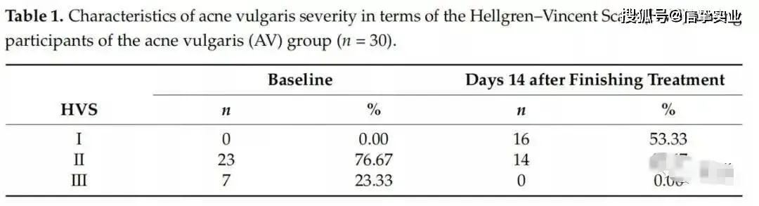 - 试验组(AV组):由40名皮脂水平较高的年轻女性和痤疮患者(AV)组成,均被诊断为轻度面部寻常性痤疮。通过海尔格伦 - 文森特量表(HVS)评估痤疮病灶严重程度,二级HVS (n = 23, 76.67%)和三级HVS的患者。该组入选标准包括18 - 25岁年龄段、特定病情等;排除标准涵盖严重痤疮、近期使用相关药物、怀孕哺乳、各类皮肤疾病等情况。