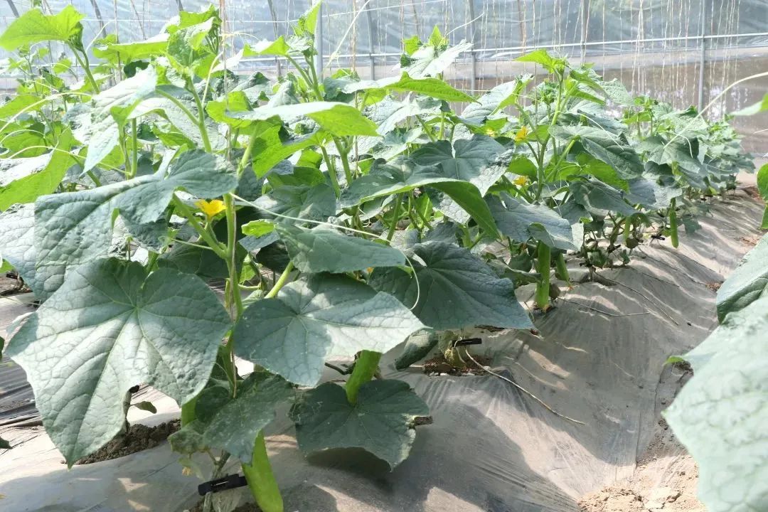 步入西集镇车屯村科技小院试种大棚,一片充满生机、绿意葱茏的画面即刻展现在眼前。一列列井然有序的番茄、黄瓜与西瓜藤蔓昂首向上,枝头挂满了沉甸甸、令人欣喜的硕果,展现出一派茁壮成长的景象。