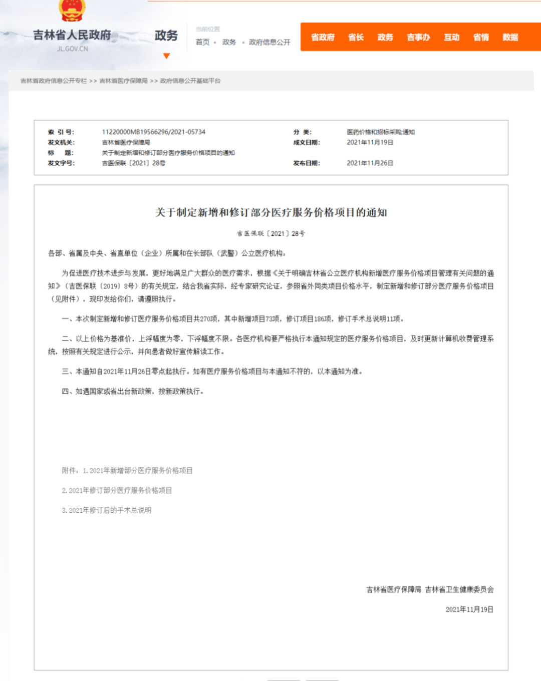 2021年11月26日,吉林省医疗保障局在吉林省人民政府网站正式刊文,“氢氧混合气体吸入疗法”被纳入2021年新增部分医疗服务,发文字号:“吉医保联〔2021〕28号”。