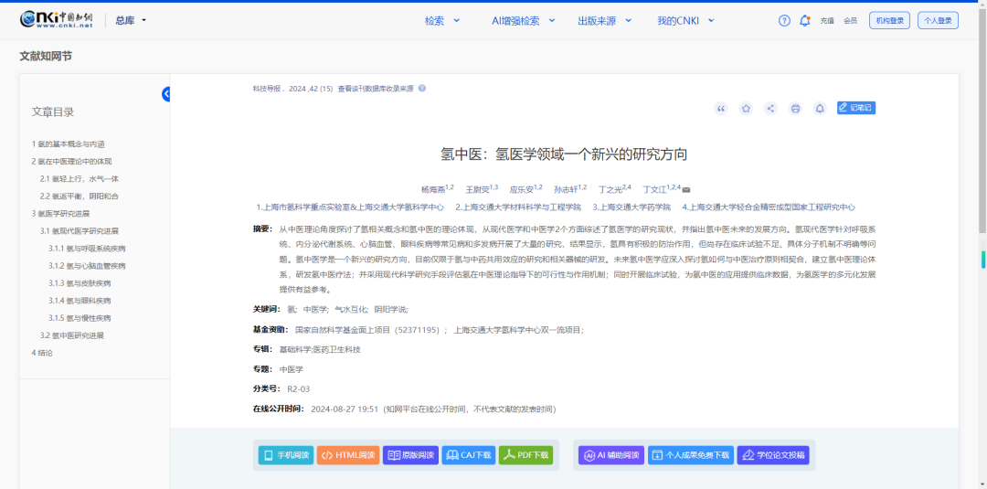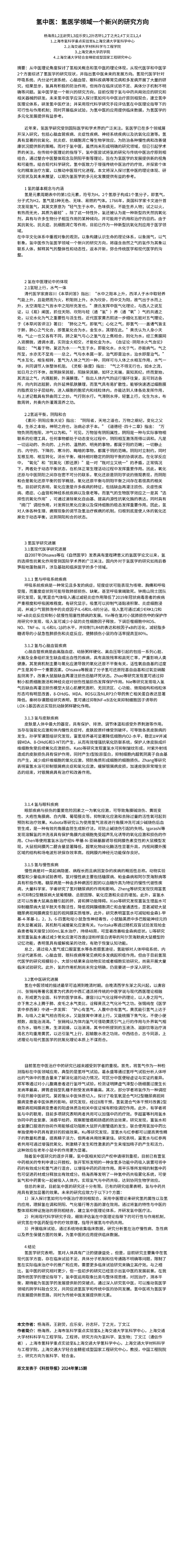 《科技导报》氢中医:氢医学领域一个新兴的研究方向